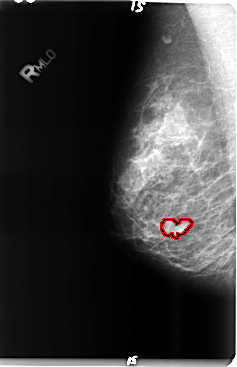 FILE: B_3491_1.RIGHT_MLO.OVERLAY TOTAL_ABNORMALITIES 1 ABNORMALITY 1 LESION_TYPE MASS SHAPE IRREGULAR MARGINS CIRCUMSCRIBED-ILL_DEFINED ASSESSMENT 4 SUBTLETY 4 PATHOLOGY BENIGN TOTAL_OUTLINES 1 BOUNDARY |