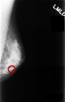 FILE: C_0477_1.LEFT_MLO.OVERLAY TOTAL_ABNORMALITIES 1 ABNORMALITY 1 LESION_TYPE CALCIFICATION TYPE PUNCTATE DISTRIBUTION CLUSTERED ASSESSMENT 4 SUBTLETY 3 PATHOLOGY BENIGN TOTAL_OUTLINES 1 BOUNDARY |