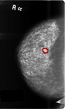 FILE: B_3459_1.RIGHT_CC.OVERLAY TOTAL_ABNORMALITIES 1 ABNORMALITY 1 LESION_TYPE CALCIFICATION TYPE PLEOMORPHIC DISTRIBUTION CLUSTERED ASSESSMENT 4 SUBTLETY 4 PATHOLOGY BENIGN TOTAL_OUTLINES 1 BOUNDARY |