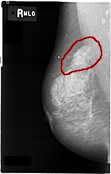 FILE: C_0004_1.RIGHT_MLO.OVERLAY TOTAL_ABNORMALITIES 1 ABNORMALITY 1 LESION_TYPE MASS SHAPE IRREGULAR MARGINS SPICULATED ASSESSMENT 5 SUBTLETY 5 PATHOLOGY MALIGNANT TOTAL_OUTLINES 1 BOUNDARY |