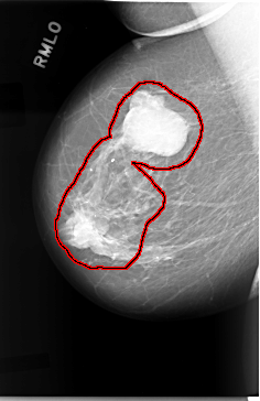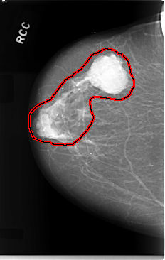 FILE: C_0019_1.RIGHT_CC.OVERLAY TOTAL_ABNORMALITIES 1 ABNORMALITY 1 LESION_TYPE MASS SHAPE LOBULATED MARGINS CIRCUMSCRIBED ASSESSMENT 5 SUBTLETY 5 PATHOLOGY MALIGNANT TOTAL_OUTLINES 1 BOUNDARY |