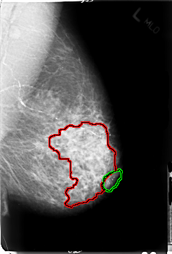 FILE: B_3027_1.LEFT_CC.OVERLAY TOTAL_ABNORMALITIES 2 ABNORMALITY 1 LESION_TYPE MASS SHAPE IRREGULAR MARGINS ILL_DEFINED ASSESSMENT 4 SUBTLETY 4 PATHOLOGY MALIGNANT TOTAL_OUTLINES 1 BOUNDARY ABNORMALITY 2 LESION_TYPE CALCIFICATION TYPE PLEOMORPHIC DISTRIBUTION CLUSTERED ASSESSMENT 4 SUBTLETY 4 PATHOLOGY MALIGNANT TOTAL_OUTLINES 1 BOUNDARY |