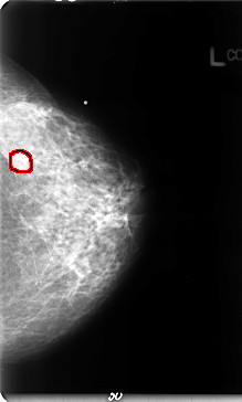 FILE: B_3072_1.LEFT_CC.OVERLAY TOTAL_ABNORMALITIES 1 ABNORMALITY 1 LESION_TYPE MASS SHAPE IRREGULAR MARGINS OBSCURED-ILL_DEFINED ASSESSMENT 3 SUBTLETY 3 PATHOLOGY MALIGNANT TOTAL_OUTLINES 1 BOUNDARY |