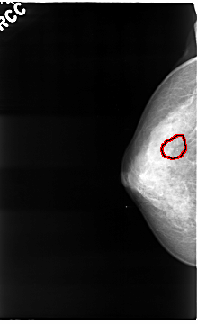 FILE: C_0036_1.RIGHT_MLO.OVERLAY TOTAL_ABNORMALITIES 1 ABNORMALITY 1 LESION_TYPE CALCIFICATION TYPE PUNCTATE DISTRIBUTION CLUSTERED ASSESSMENT 4 SUBTLETY 4 PATHOLOGY MALIGNANT TOTAL_OUTLINES 1 BOUNDARY |