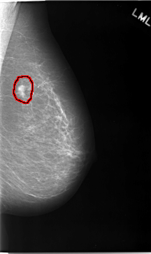 FILE: C_0046_1.LEFT_MLO.OVERLAY TOTAL_ABNORMALITIES 1 ABNORMALITY 1 LESION_TYPE MASS SHAPE LOBULATED MARGINS SPICULATED ASSESSMENT 5 SUBTLETY 5 PATHOLOGY MALIGNANT TOTAL_OUTLINES 1 BOUNDARY |