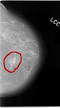 FILE: C_0047_1.LEFT_CC.OVERLAY TOTAL_ABNORMALITIES 1 ABNORMALITY 1 LESION_TYPE CALCIFICATION TYPE AMORPHOUS DISTRIBUTION CLUSTERED LESION_TYPE MASS SHAPE ARCHITECTURAL_DISTORTION MARGINS N/A ASSESSMENT 5 SUBTLETY 5 PATHOLOGY MALIGNANT TOTAL_OUTLINES 1 BOUNDARY |