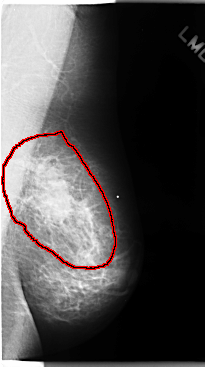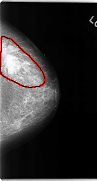 FILE: C_0108_1.LEFT_CC.OVERLAY TOTAL_ABNORMALITIES 1 ABNORMALITY 1 LESION_TYPE MASS SHAPE IRREGULAR MARGINS ILL_DEFINED ASSESSMENT 5 SUBTLETY 5 PATHOLOGY MALIGNANT TOTAL_OUTLINES 1 BOUNDARY |