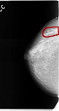 FILE: C_0110_1.RIGHT_CC.OVERLAY TOTAL_ABNORMALITIES 1 ABNORMALITY 1 LESION_TYPE MASS SHAPE ARCHITECTURAL_DISTORTION MARGINS SPICULATED ASSESSMENT 5 SUBTLETY 3 PATHOLOGY MALIGNANT TOTAL_OUTLINES 1 BOUNDARY |