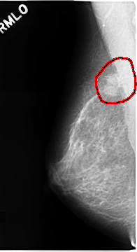 FILE: C_0110_1.RIGHT_MLO.OVERLAY TOTAL_ABNORMALITIES 1 ABNORMALITY 1 LESION_TYPE MASS SHAPE IRREGULAR MARGINS SPICULATED ASSESSMENT 5 SUBTLETY 5 PATHOLOGY MALIGNANT TOTAL_OUTLINES 1 BOUNDARY |