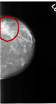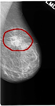 FILE: C_0123_1.LEFT_CC.OVERLAY TOTAL_ABNORMALITIES 1 ABNORMALITY 1 LESION_TYPE MASS SHAPE IRREGULAR MARGINS ILL_DEFINED ASSESSMENT 5 SUBTLETY 5 PATHOLOGY MALIGNANT TOTAL_OUTLINES 1 BOUNDARY |