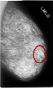 FILE: C_0130_1.LEFT_MLO.OVERLAY TOTAL_ABNORMALITIES 1 ABNORMALITY 1 LESION_TYPE MASS SHAPE IRREGULAR MARGINS ILL_DEFINED ASSESSMENT 4 SUBTLETY 1 PATHOLOGY MALIGNANT TOTAL_OUTLINES 1 BOUNDARY |