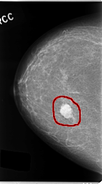 FILE: C_0131_1.RIGHT_CC.OVERLAY TOTAL_ABNORMALITIES 1 ABNORMALITY 1 LESION_TYPE MASS SHAPE LOBULATED MARGINS CIRCUMSCRIBED ASSESSMENT 5 SUBTLETY 5 PATHOLOGY MALIGNANT TOTAL_OUTLINES 1 BOUNDARY |