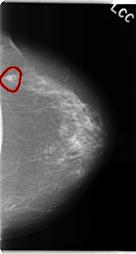 FILE: C_0135_1.LEFT_CC.OVERLAY TOTAL_ABNORMALITIES 1 ABNORMALITY 1 LESION_TYPE MASS SHAPE OVAL MARGINS MICROLOBULATED ASSESSMENT 4 SUBTLETY 5 PATHOLOGY MALIGNANT TOTAL_OUTLINES 1 BOUNDARY |