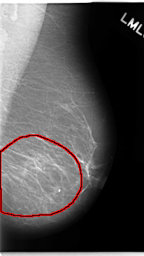 FILE: C_0138_1.LEFT_CC.OVERLAY TOTAL_ABNORMALITIES 1 ABNORMALITY 1 LESION_TYPE CALCIFICATION TYPE AMORPHOUS DISTRIBUTION REGIONAL ASSESSMENT 5 SUBTLETY 3 PATHOLOGY MALIGNANT TOTAL_OUTLINES 1 BOUNDARY |