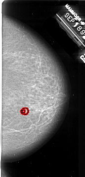 FILE: A_1009_1.RIGHT_CC.OVERLAY TOTAL_ABNORMALITIES 1 ABNORMALITY 1 LESION_TYPE MASS SHAPE IRREGULAR MARGINS SPICULATED ASSESSMENT 4 SUBTLETY 1 PATHOLOGY MALIGNANT TOTAL_OUTLINES 2 BOUNDARY CORE |