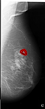 FILE: A_1012_1.RIGHT_CC.OVERLAY TOTAL_ABNORMALITIES 1 ABNORMALITY 1 LESION_TYPE MASS SHAPE IRREGULAR MARGINS SPICULATED ASSESSMENT 4 SUBTLETY 2 PATHOLOGY MALIGNANT TOTAL_OUTLINES 2 BOUNDARY CORE |