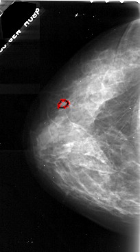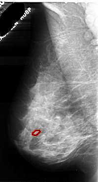 FILE: A_1047_1.LEFT_CC.OVERLAY TOTAL_ABNORMALITIES 1 ABNORMALITY 1 LESION_TYPE CALCIFICATION TYPE PLEOMORPHIC DISTRIBUTION CLUSTERED ASSESSMENT 4 SUBTLETY 2 PATHOLOGY MALIGNANT TOTAL_OUTLINES 1 BOUNDARY |