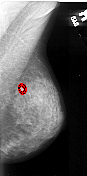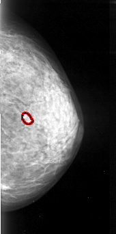 FILE: A_1057_1.RIGHT_CC.OVERLAY TOTAL_ABNORMALITIES 1 ABNORMALITY 1 LESION_TYPE MASS SHAPE OVAL MARGINS ILL_DEFINED ASSESSMENT 4 SUBTLETY 4 PATHOLOGY MALIGNANT TOTAL_OUTLINES 1 BOUNDARY |