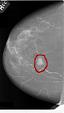 FILE: C_0031_1.RIGHT_CC.OVERLAY TOTAL_ABNORMALITIES 1 ABNORMALITY 1 LESION_TYPE MASS SHAPE IRREGULAR MARGINS SPICULATED ASSESSMENT 5 SUBTLETY 5 PATHOLOGY MALIGNANT TOTAL_OUTLINES 1 BOUNDARY |