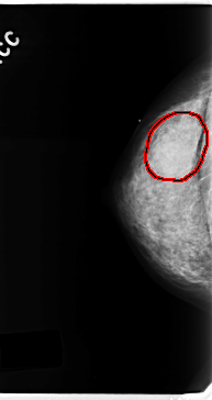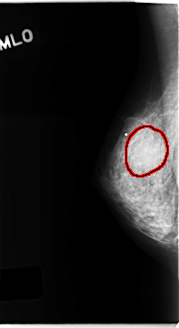 FILE: C_0154_1.RIGHT_CC.OVERLAY TOTAL_ABNORMALITIES 1 ABNORMALITY 1 LESION_TYPE MASS SHAPE ROUND MARGINS ILL_DEFINED ASSESSMENT 4 SUBTLETY 3 PATHOLOGY MALIGNANT TOTAL_OUTLINES 1 BOUNDARY |