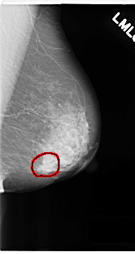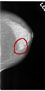 FILE: C_0180_1.LEFT_CC.OVERLAY TOTAL_ABNORMALITIES 1 ABNORMALITY 1 LESION_TYPE MASS SHAPE LOBULATED MARGINS SPICULATED ASSESSMENT 5 SUBTLETY 5 PATHOLOGY MALIGNANT TOTAL_OUTLINES 1 BOUNDARY |