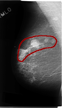 FILE: C_0182_1.RIGHT_CC.OVERLAY TOTAL_ABNORMALITIES 1 ABNORMALITY 1 LESION_TYPE MASS SHAPE LOBULATED MARGINS CIRCUMSCRIBED ASSESSMENT 5 SUBTLETY 5 PATHOLOGY MALIGNANT TOTAL_OUTLINES 1 BOUNDARY |