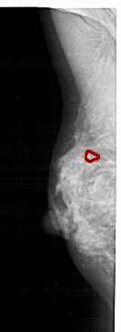 FILE: A_1283_1.LEFT_MLO.OVERLAY TOTAL_ABNORMALITIES 1 ABNORMALITY 1 LESION_TYPE CALCIFICATION TYPE PUNCTATE DISTRIBUTION CLUSTERED ASSESSMENT 4 SUBTLETY 1 PATHOLOGY MALIGNANT TOTAL_OUTLINES 1 BOUNDARY |