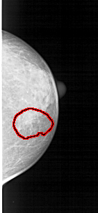 FILE: A_1517_1.RIGHT_MLO.OVERLAY TOTAL_ABNORMALITIES 1 ABNORMALITY 1 LESION_TYPE CALCIFICATION TYPE PLEOMORPHIC DISTRIBUTION CLUSTERED LESION_TYPE MASS SHAPE ARCHITECTURAL_DISTORTION MARGINS ILL_DEFINED ASSESSMENT 5 SUBTLETY 3 PATHOLOGY MALIGNANT TOTAL_OUTLINES 1 BOUNDARY |