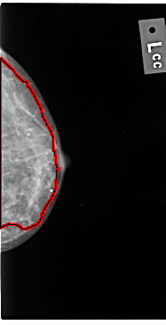 FILE: C_0039_1.LEFT_MLO.OVERLAY TOTAL_ABNORMALITIES 1 ABNORMALITY 1 LESION_TYPE CALCIFICATION TYPE AMORPHOUS DISTRIBUTION DIFFUSELY_SCATTERED ASSESSMENT 3 SUBTLETY 4 PATHOLOGY MALIGNANT TOTAL_OUTLINES 1 BOUNDARY |