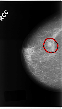 FILE: C_0225_1.RIGHT_CC.OVERLAY TOTAL_ABNORMALITIES 1 ABNORMALITY 1 LESION_TYPE MASS SHAPE OVAL MARGINS SPICULATED ASSESSMENT 5 SUBTLETY 5 PATHOLOGY MALIGNANT TOTAL_OUTLINES 1 BOUNDARY |