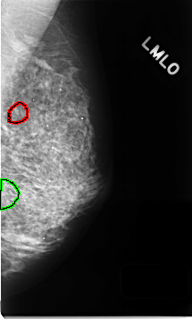 FILE: C_0344_1.LEFT_MLO.OVERLAY TOTAL_ABNORMALITIES 2 ABNORMALITY 1 LESION_TYPE CALCIFICATION TYPE PUNCTATE DISTRIBUTION CLUSTERED ASSESSMENT 5 SUBTLETY 5 PATHOLOGY MALIGNANT TOTAL_OUTLINES 2 BOUNDARY ABNORMALITY 2 LESION_TYPE CALCIFICATION TYPE FINE_LINEAR_BRANCHING DISTRIBUTION CLUSTERED ASSESSMENT 5 SUBTLETY 5 PATHOLOGY MALIGNANT TOTAL_OUTLINES 1 BOUNDARY |