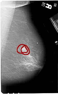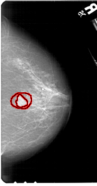 FILE: A_1574_1.RIGHT_CC.OVERLAY TOTAL_ABNORMALITIES 1 ABNORMALITY 1 LESION_TYPE MASS SHAPE IRREGULAR MARGINS ILL_DEFINED ASSESSMENT 5 SUBTLETY 5 PATHOLOGY MALIGNANT TOTAL_OUTLINES 2 BOUNDARY CORE |