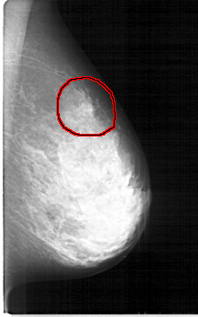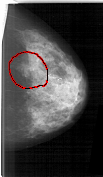 FILE: D_4114_1.LEFT_CC.OVERLAY TOTAL_ABNORMALITIES 1 ABNORMALITY 1 LESION_TYPE MASS SHAPE IRREGULAR MARGINS ILL_DEFINED ASSESSMENT 3 SUBTLETY 4 PATHOLOGY MALIGNANT TOTAL_OUTLINES 1 BOUNDARY |