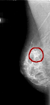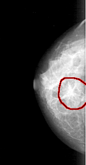 FILE: D_4185_1.RIGHT_CC.OVERLAY TOTAL_ABNORMALITIES 1 ABNORMALITY 1 LESION_TYPE MASS SHAPE IRREGULAR MARGINS SPICULATED ASSESSMENT 5 SUBTLETY 4 PATHOLOGY MALIGNANT TOTAL_OUTLINES 1 BOUNDARY |