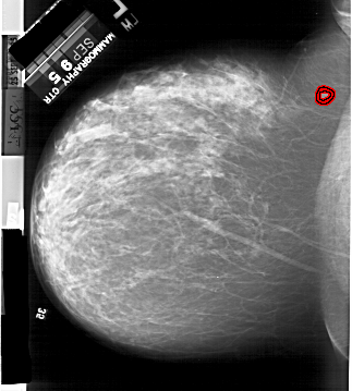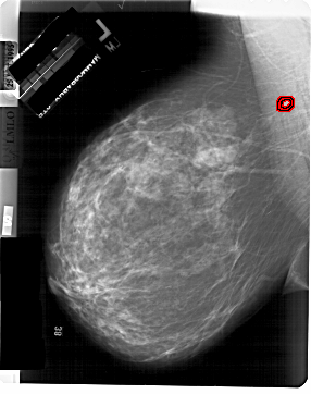FILE: A_1899_1.LEFT_CC.OVERLAY TOTAL_ABNORMALITIES 1 ABNORMALITY 1 LESION_TYPE MASS SHAPE IRREGULAR MARGINS SPICULATED ASSESSMENT 5 SUBTLETY 4 PATHOLOGY MALIGNANT TOTAL_OUTLINES 2 BOUNDARY CORE |