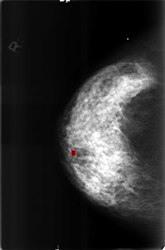 FILE: B_3175_1.RIGHT_MLO.OVERLAY TOTAL_ABNORMALITIES 1 ABNORMALITY 1 LESION_TYPE CALCIFICATION TYPE LUCENT_CENTER DISTRIBUTION N/A ASSESSMENT 2 SUBTLETY 3 PATHOLOGY BENIGN_WITHOUT_CALLBACK TOTAL_OUTLINES 1 BOUNDARY |