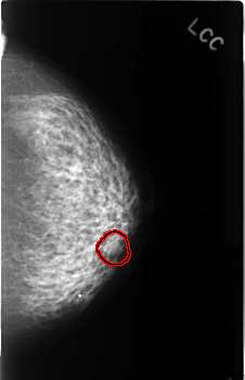 FILE: C_0419_1.LEFT_CC.OVERLAY TOTAL_ABNORMALITIES 1 ABNORMALITY 1 LESION_TYPE MASS SHAPE ROUND MARGINS ILL_DEFINED ASSESSMENT 3 SUBTLETY 3 PATHOLOGY BENIGN_WITHOUT_CALLBACK TOTAL_OUTLINES 1 BOUNDARY |
