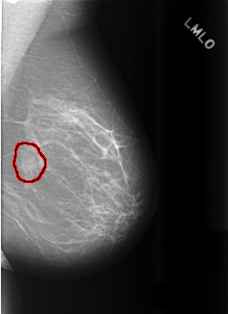 FILE: C_0469_1.LEFT_MLO.OVERLAY TOTAL_ABNORMALITIES 1 ABNORMALITY 1 LESION_TYPE MASS SHAPE IRREGULAR MARGINS SPICULATED ASSESSMENT 3 SUBTLETY 5 PATHOLOGY BENIGN_WITHOUT_CALLBACK TOTAL_OUTLINES 1 BOUNDARY |