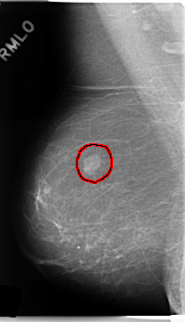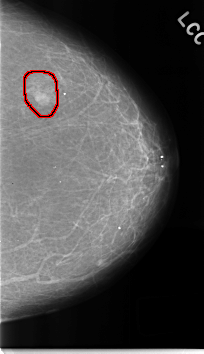 FILE: C_0249_1.LEFT_CC.OVERLAY TOTAL_ABNORMALITIES 1 ABNORMALITY 1 LESION_TYPE MASS SHAPE LOBULATED MARGINS CIRCUMSCRIBED ASSESSMENT 4 SUBTLETY 5 PATHOLOGY BENIGN TOTAL_OUTLINES 1 BOUNDARY |