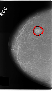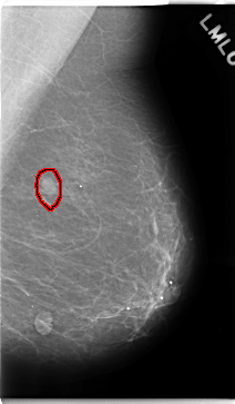 FILE: C_0249_1.RIGHT_CC.OVERLAY TOTAL_ABNORMALITIES 1 ABNORMALITY 1 LESION_TYPE MASS SHAPE LOBULATED MARGINS CIRCUMSCRIBED ASSESSMENT 4 SUBTLETY 5 PATHOLOGY BENIGN TOTAL_OUTLINES 1 BOUNDARY |
