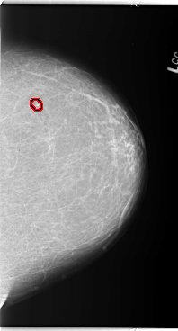 FILE: B_3104_1.LEFT_CC.OVERLAY TOTAL_ABNORMALITIES 1 ABNORMALITY 1 LESION_TYPE CALCIFICATION TYPE PLEOMORPHIC DISTRIBUTION CLUSTERED ASSESSMENT 4 SUBTLETY 4 PATHOLOGY BENIGN TOTAL_OUTLINES 1 BOUNDARY |