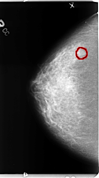 FILE: B_3142_1.RIGHT_CC.OVERLAY TOTAL_ABNORMALITIES 1 ABNORMALITY 1 LESION_TYPE MASS SHAPE OVAL MARGINS CIRCUMSCRIBED-OBSCURED-ILL_DEFINED ASSESSMENT 4 SUBTLETY 2 PATHOLOGY BENIGN TOTAL_OUTLINES 1 BOUNDARY |