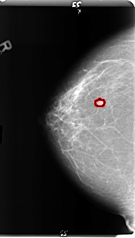 FILE: B_3146_1.RIGHT_CC.OVERLAY TOTAL_ABNORMALITIES 1 ABNORMALITY 1 LESION_TYPE MASS SHAPE LOBULATED MARGINS CIRCUMSCRIBED ASSESSMENT 4 SUBTLETY 4 PATHOLOGY BENIGN TOTAL_OUTLINES 1 BOUNDARY |