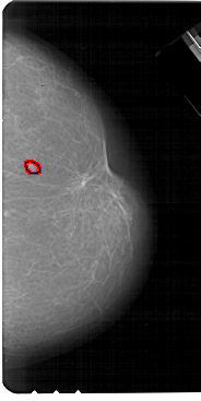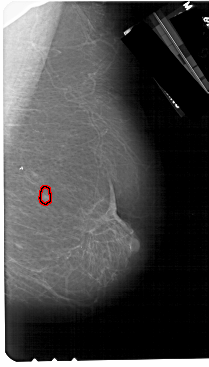 FILE: A_1267_1.RIGHT_CC.OVERLAY TOTAL_ABNORMALITIES 1 ABNORMALITY 1 LESION_TYPE MASS SHAPE OVAL MARGINS CIRCUMSCRIBED ASSESSMENT 4 SUBTLETY 4 PATHOLOGY BENIGN TOTAL_OUTLINES 1 BOUNDARY |