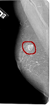 FILE: A_1306_1.LEFT_CC.OVERLAY TOTAL_ABNORMALITIES 1 ABNORMALITY 1 LESION_TYPE CALCIFICATION TYPE AMORPHOUS DISTRIBUTION N/A LESION_TYPE MASS SHAPE OVAL MARGINS CIRCUMSCRIBED ASSESSMENT 2 SUBTLETY 5 PATHOLOGY BENIGN TOTAL_OUTLINES 1 BOUNDARY |