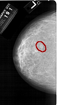 FILE: A_1323_1.LEFT_CC.OVERLAY TOTAL_ABNORMALITIES 1 ABNORMALITY 1 LESION_TYPE MASS SHAPE OVAL MARGINS OBSCURED-ILL_DEFINED ASSESSMENT 4 SUBTLETY 2 PATHOLOGY BENIGN TOTAL_OUTLINES 1 BOUNDARY |