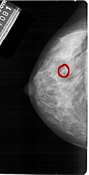 FILE: A_1392_1.LEFT_CC.OVERLAY TOTAL_ABNORMALITIES 1 ABNORMALITY 1 LESION_TYPE CALCIFICATION TYPE PLEOMORPHIC DISTRIBUTION CLUSTERED ASSESSMENT 4 SUBTLETY 2 PATHOLOGY BENIGN TOTAL_OUTLINES 1 BOUNDARY |