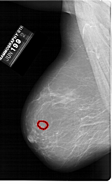 FILE: A_1398_1.LEFT_CC.OVERLAY TOTAL_ABNORMALITIES 1 ABNORMALITY 1 LESION_TYPE MASS SHAPE LOBULATED MARGINS CIRCUMSCRIBED ASSESSMENT 3 SUBTLETY 3 PATHOLOGY BENIGN TOTAL_OUTLINES 1 BOUNDARY |