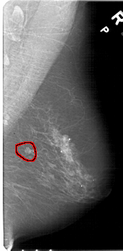 FILE: A_1457_1.RIGHT_CC.OVERLAY TOTAL_ABNORMALITIES 1 ABNORMALITY 1 LESION_TYPE MASS SHAPE LOBULATED MARGINS CIRCUMSCRIBED ASSESSMENT 4 SUBTLETY 4 PATHOLOGY BENIGN TOTAL_OUTLINES 1 BOUNDARY |