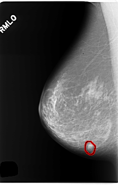 FILE: C_0255_1.RIGHT_MLO.OVERLAY TOTAL_ABNORMALITIES 1 ABNORMALITY 1 LESION_TYPE MASS SHAPE OVAL MARGINS CIRCUMSCRIBED ASSESSMENT 4 SUBTLETY 5 PATHOLOGY BENIGN TOTAL_OUTLINES 1 BOUNDARY |